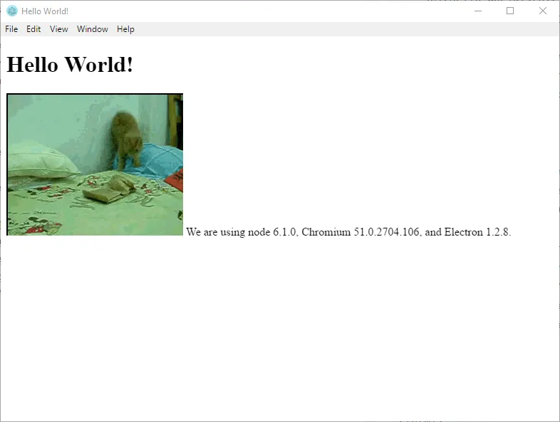 and Electron <script>document.write(process.versions.electron)</script>.